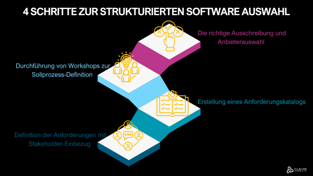 Eine strukturierte Herangehensweise an die Auswahl von HR-Software ist essenziell, um die passende Lösung für die spezifischen Anforderungen eines Unternehmens zu finden. Die folgenden Schritte bieten eine klare Anleitung für diesen Prozess.