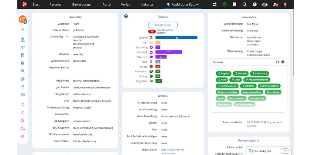- Skillmanagement & Potenzialanalysen: Kompetenzen erfassen, Talente erkennen und gezielt weiterentwickeln.