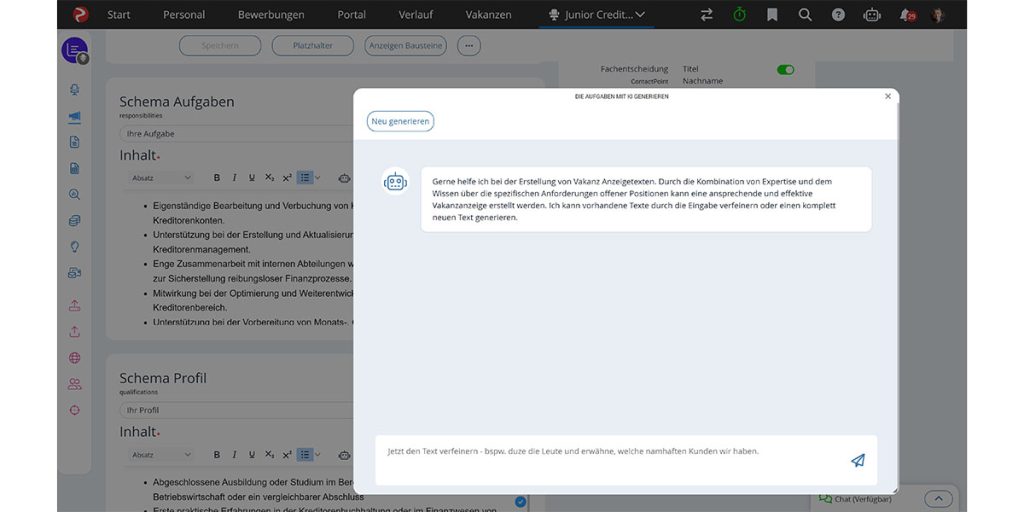 - KI-Assistent Rai: Unterstützt bei der Kommunikation mit Bewerbenden, hilft bei der Erstellung von Stellenausschreibungen und kann als Jobbot auf Ihrem Karriereportal eingebunden werden.