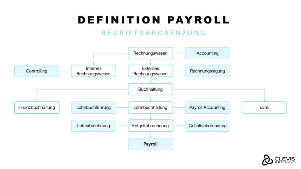 In Deutschland wird Payroll als Entgeltabrechnung bezeichnet. Sie ist der Oberbegriff und fasst die Lohnabrechnung und Gehaltsabrechnung zusammen. Sie kann sowohl das eigentliche Dokument bezeichnen, das Mitarbeiter:innen als Gehaltsnachweis erhalten, wie auch den gesamten Prozess, der hinter der Ausstellung des Dokumentes liegt. Inzwischen ist im deutschsprachigen Raum das Wort Payroll als englisches Synonym in bedeutungsgleicher Verwendung stark verbreitet.